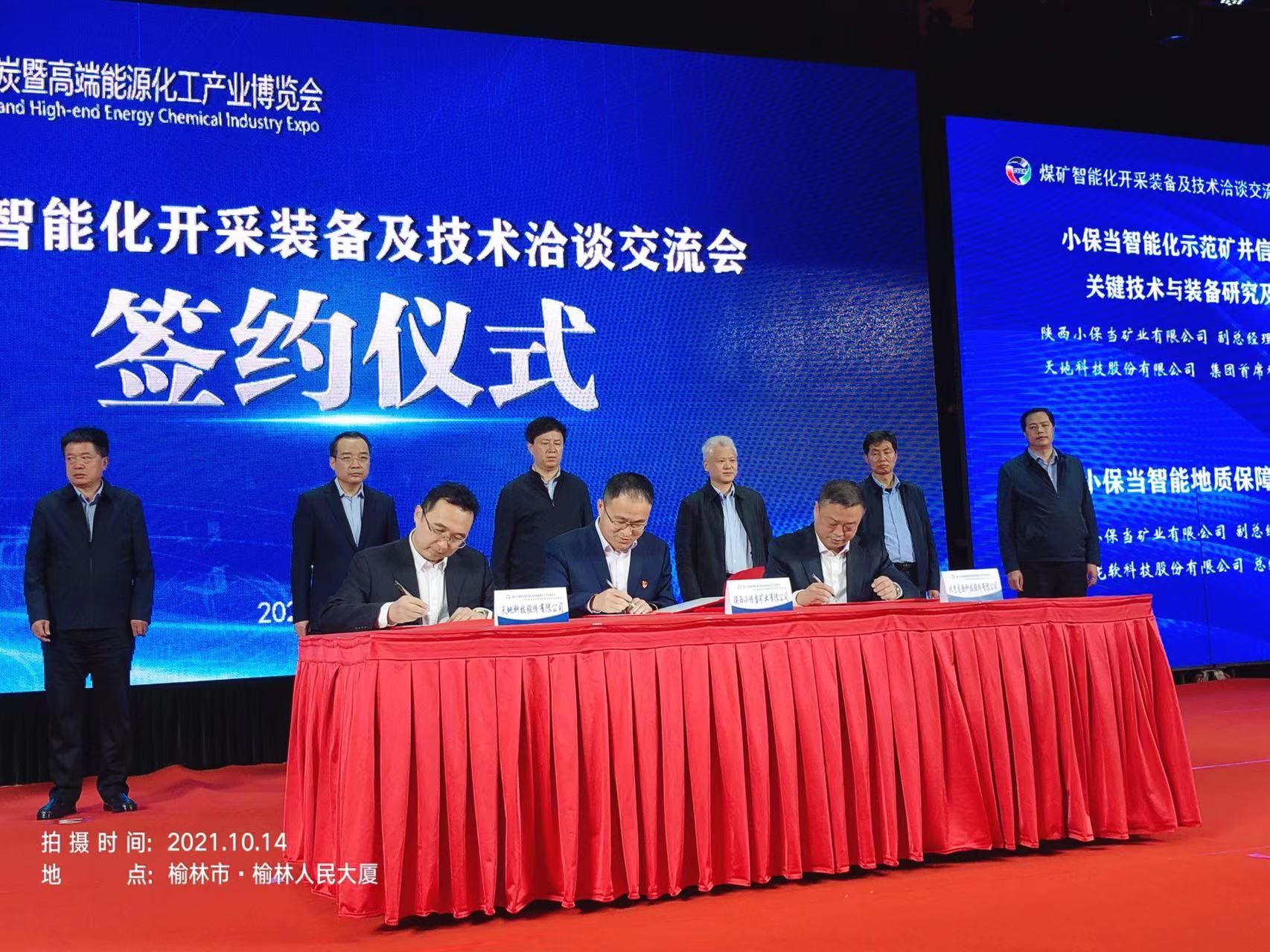 10月14日上午,公司作為陜西煤礦智能化建設(shè)的優(yōu)秀服務(wù)供應(yīng)商,應(yīng)邀參加由榆林市能源局承辦的煤礦智能化開(kāi)采裝備及技術(shù)洽談交流會(huì),并在交流會(huì)上就承擔(dān)的煤礦智能化建設(shè)項(xiàng)目同業(yè)主方簽約。