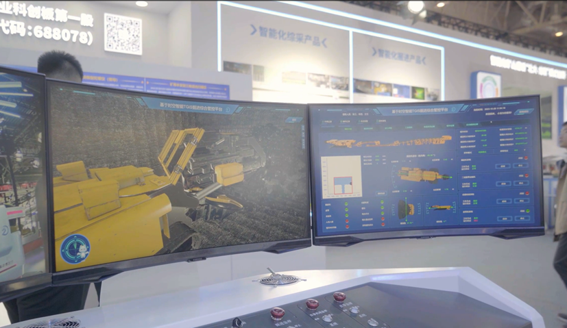 在展會(huì)現(xiàn)場(chǎng)進(jìn)行公司技術(shù)驗(yàn)證基地(河北燕郊)綜采工作面的遠(yuǎn)程管控