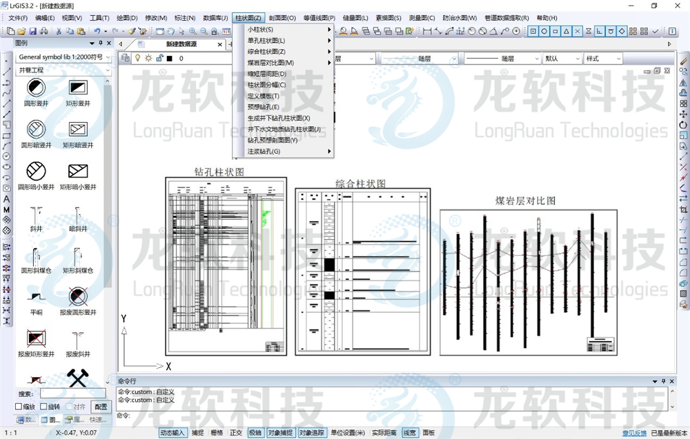 地測(cè)圖形協(xié)同管理系統(tǒng)主要包括地測(cè)數(shù)據(jù)庫管理、等值線圖、測(cè)量圖、儲(chǔ)量圖、柱狀圖、剖面圖、素描圖、防治水圖、瓦斯地質(zhì)圖等模塊。該系統(tǒng)以先進(jìn)的算法、精準(zhǔn)的空間數(shù)據(jù)信息處理、高效的圖形處理流程,實(shí)現(xiàn)等值線圖、采掘工程平面圖、鉆孔柱狀圖、綜合柱狀圖、煤巖層對(duì)比圖、勘探線剖面圖、預(yù)想剖面圖、底板等高線及儲(chǔ)量估算圖、巷道素描圖等地測(cè)圖件的繪制與管理,是礦井相關(guān)專業(yè)制圖的基礎(chǔ)。