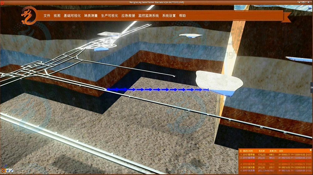( 6)地質(zhì)大數(shù)據(jù)分析與隱蔽致災(zāi)預(yù)警報(bào)警分析和預(yù)警平臺(tái)?;邶堒浽破脚_(tái),對(duì)煤礦地層、構(gòu)造、煤層、煤質(zhì)、瓦斯、水文和其它地質(zhì)條件、地質(zhì)特征及其變化規(guī)律進(jìn)行可視化智能分析,實(shí)現(xiàn)隱蔽致災(zāi)因素(水害、瓦斯、沖擊地壓等)的預(yù)測(cè)預(yù)報(bào),基于巷道、地層和生產(chǎn)的時(shí)空關(guān)系,進(jìn)行危險(xiǎn)源的遠(yuǎn)程可視化智能預(yù)警。