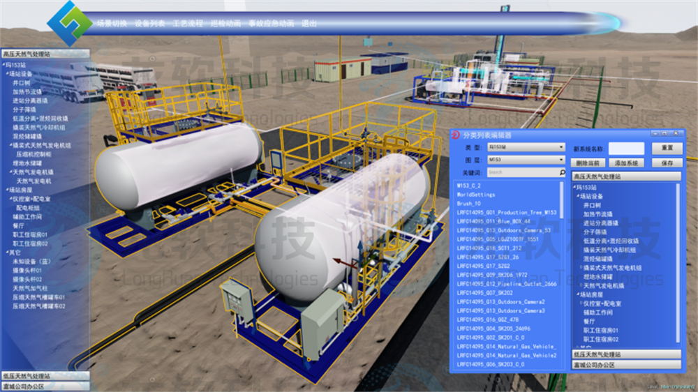 (6)在三維場(chǎng)景中進(jìn)行日常生產(chǎn)調(diào)度、安全巡檢、應(yīng)急指揮,支持油氣泄漏、氣體擴(kuò)散、火災(zāi)、爆炸等事故類(lèi)型的模擬演練場(chǎng)景設(shè)定和三維災(zāi)害場(chǎng)景的快速搭建,實(shí)現(xiàn)多角色交互式協(xié)同應(yīng)急救援演練。